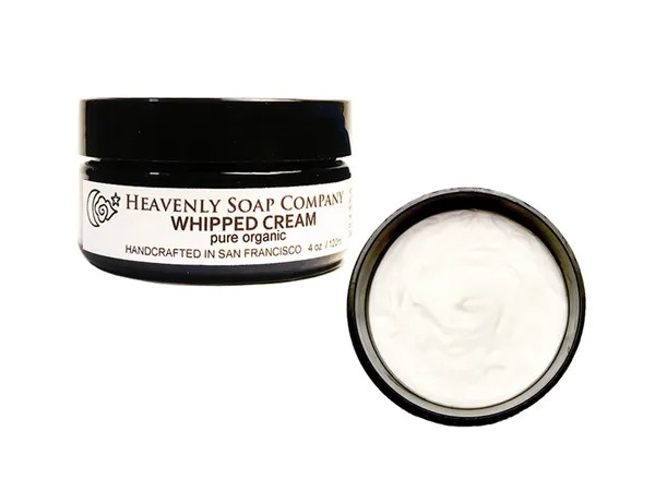 Our organic Whipped Cream is such a good moisturizer you'll want to use it on everything (we don't recommend strawberries)! Just the smallest smidgen will amply return the moisture to an entire area. Exclusive Meadowfoam Seed oil is so light to the touch, mixed with ultra-whipped shea, Heavenly Soap Company's organic Whipping Cream will no doubtedly be your favorite daily moisturizer. BASIC INFORMATION OF OUR SOAP All Organic Vegan Oil Base No Palm No Animal Test Eco-Friendly Handmade WEIGHT: 2 oz. (60g) / 4 oz. (120g) Organic Unrefined Shea Butter, Organic Argan Oil, Organic Avocado Oil, Organic Coconut Oil, Organic Jojoba Oil Organic Castor, Vitamin E. made in USA